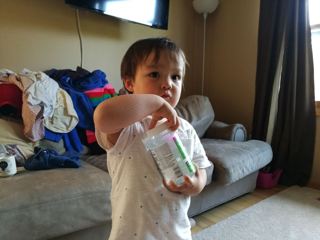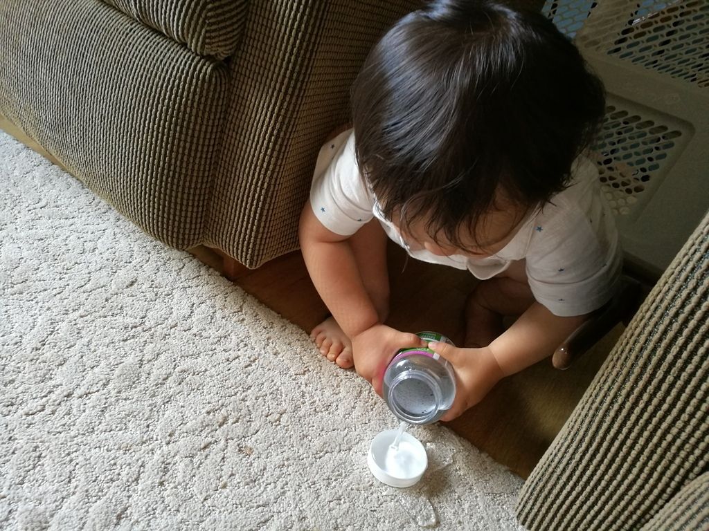 Sasuke walked in with a vitamin jar full of water. I asked Masami why she gave it to him, since it seemed like a pretty bad idea. She said she didn't-- he got it out of the recycling and filled it up himself.