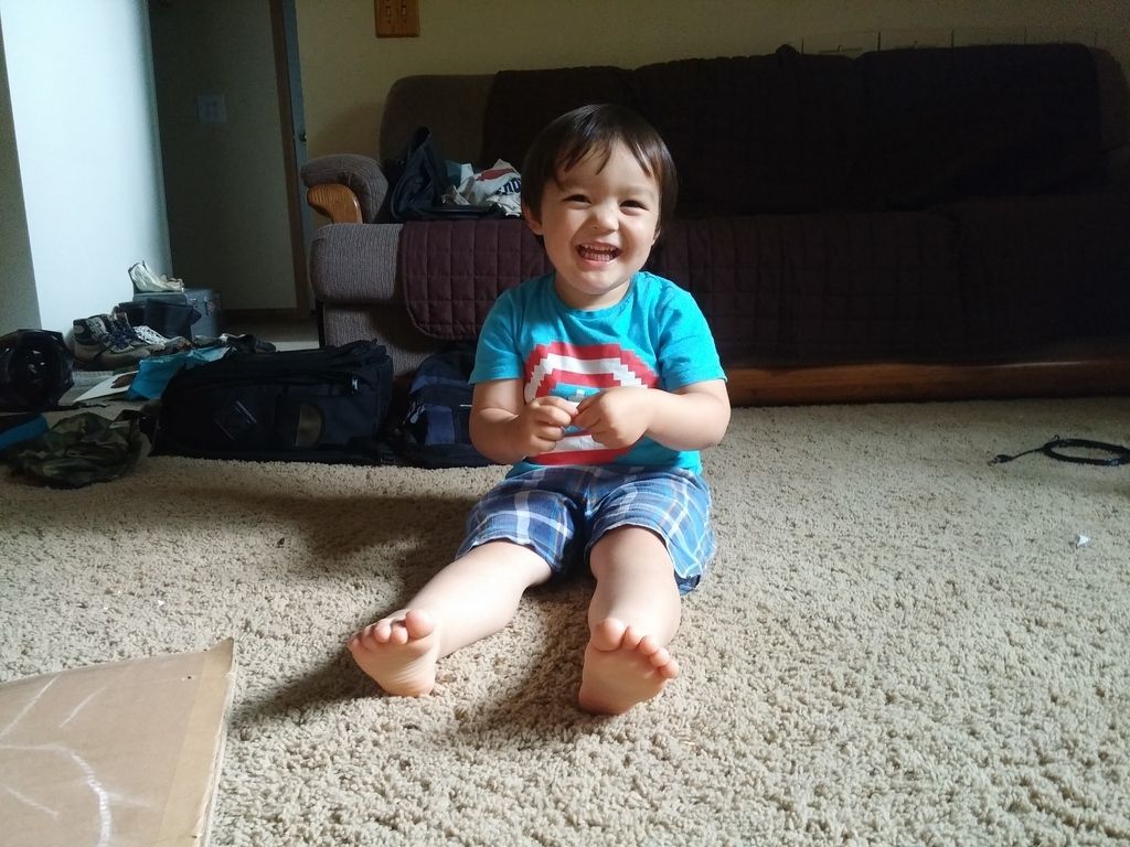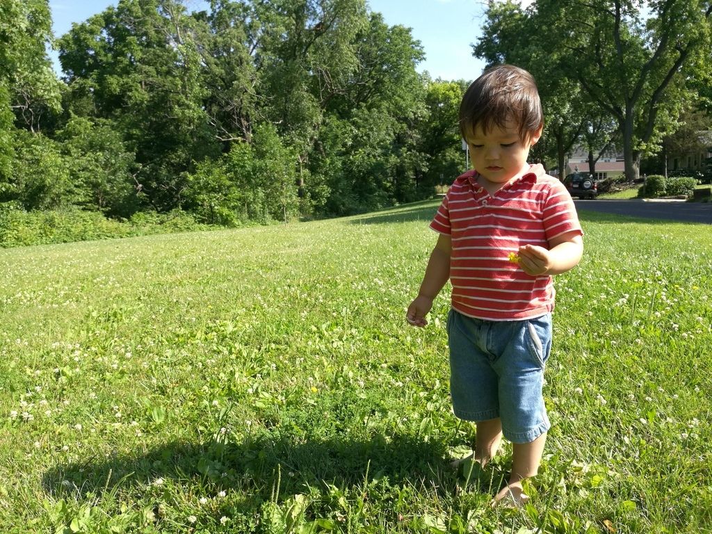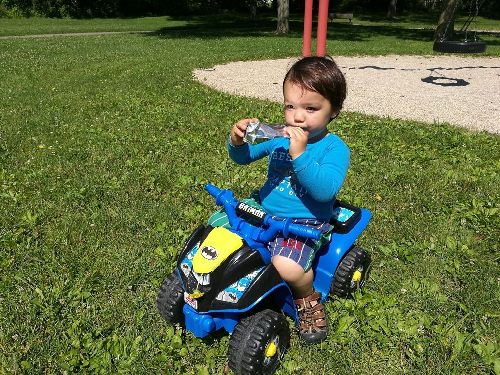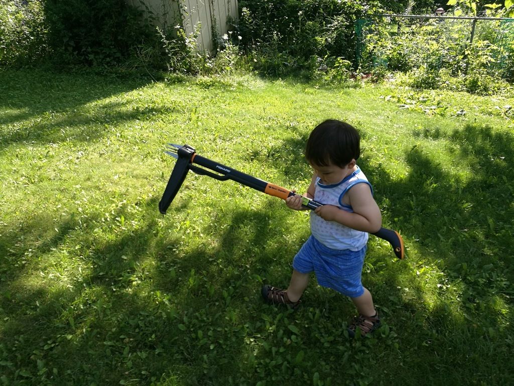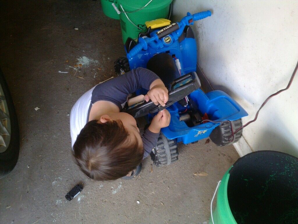 Sasuke asked me, "Papa, 何 doing?" I showed him how to put the gas in, and when he was much farther away, how to start it.