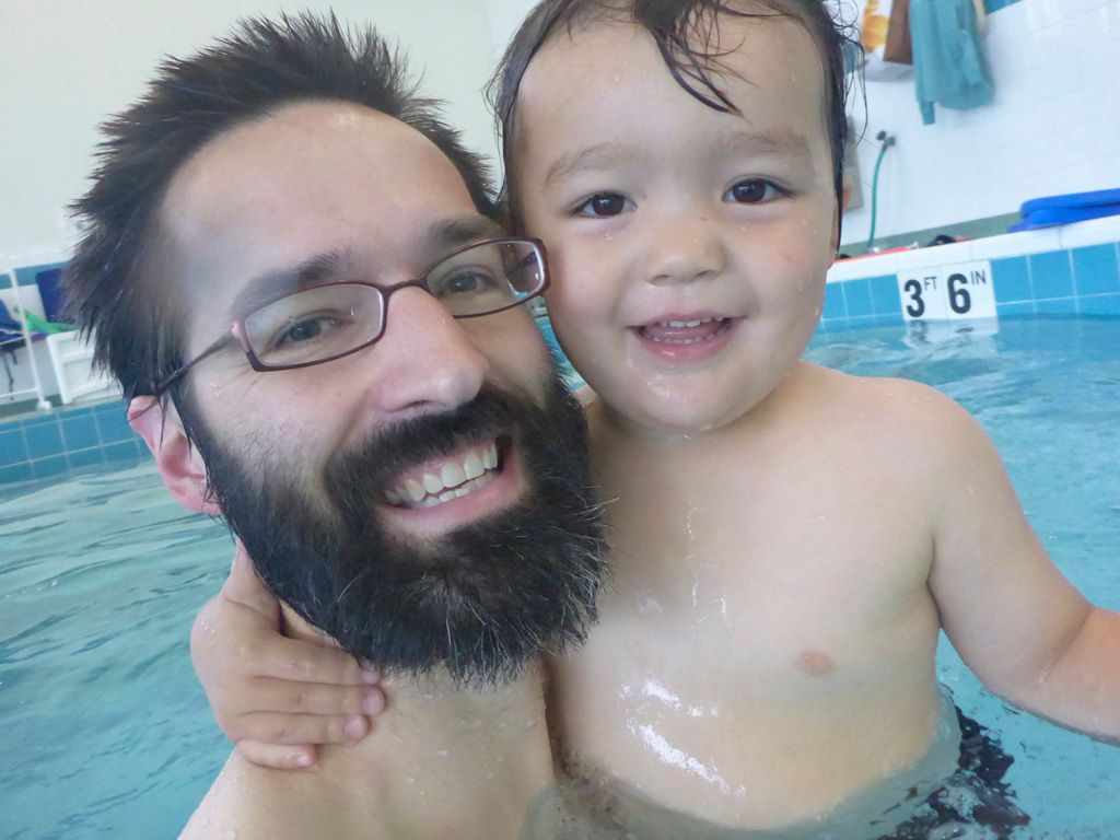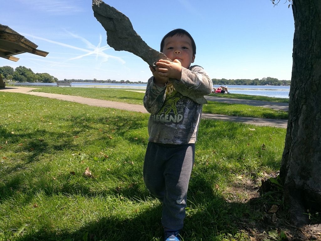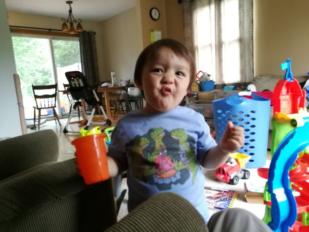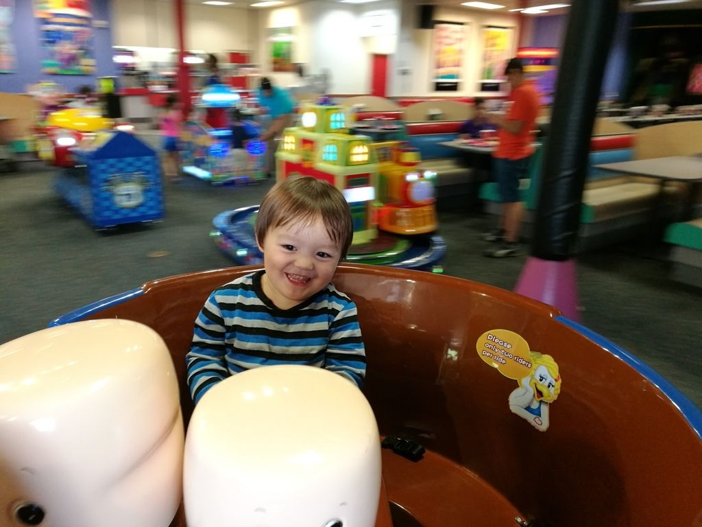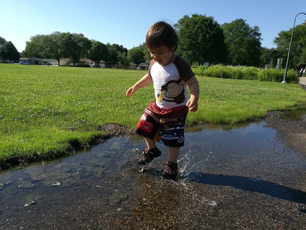 Sasuke asked me, "Papa, 何 doing?" I showed him how to put the gas in, and when he was much farther away, how to start it.