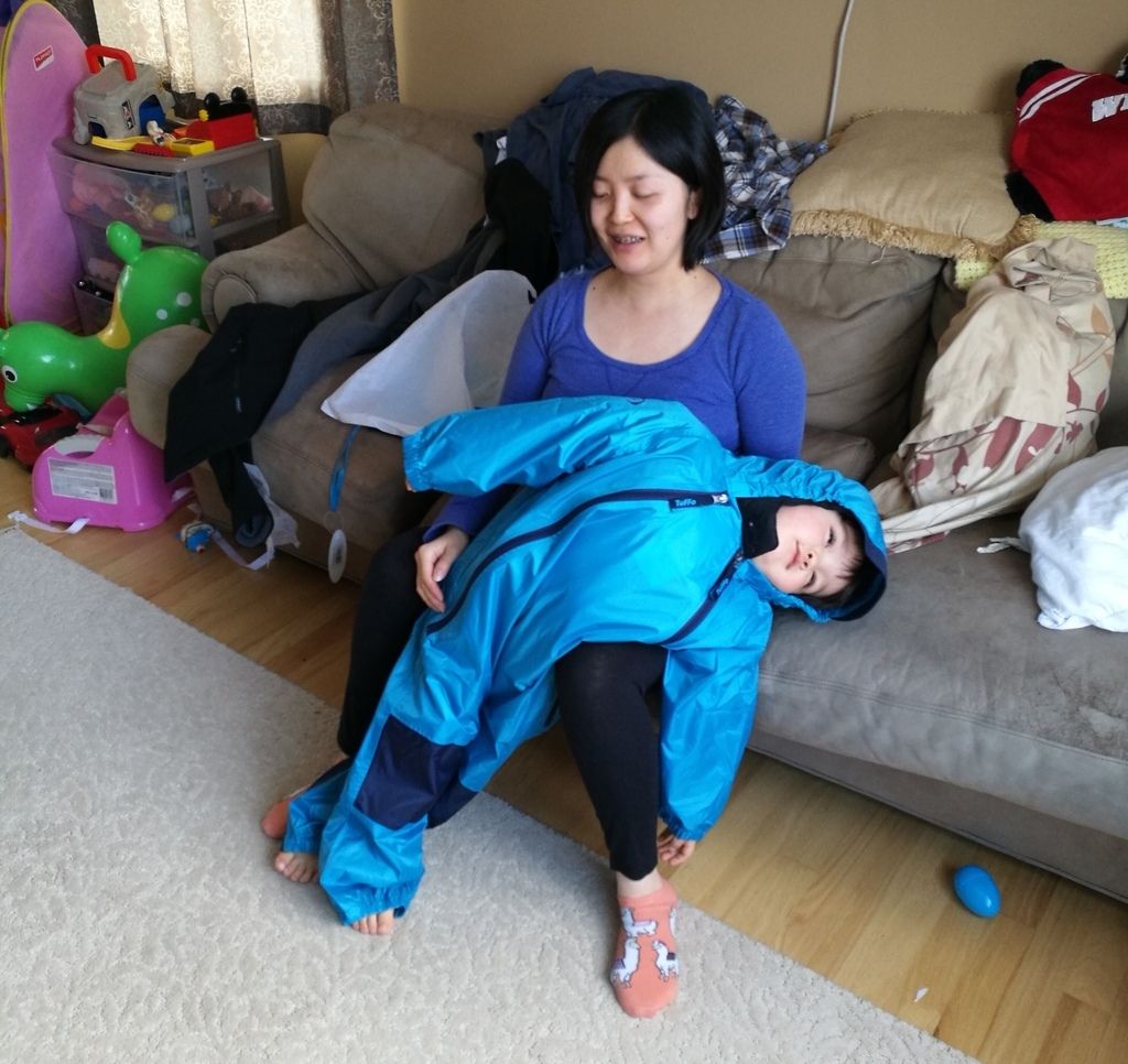 He melted in protest of trying on his new rain suit.