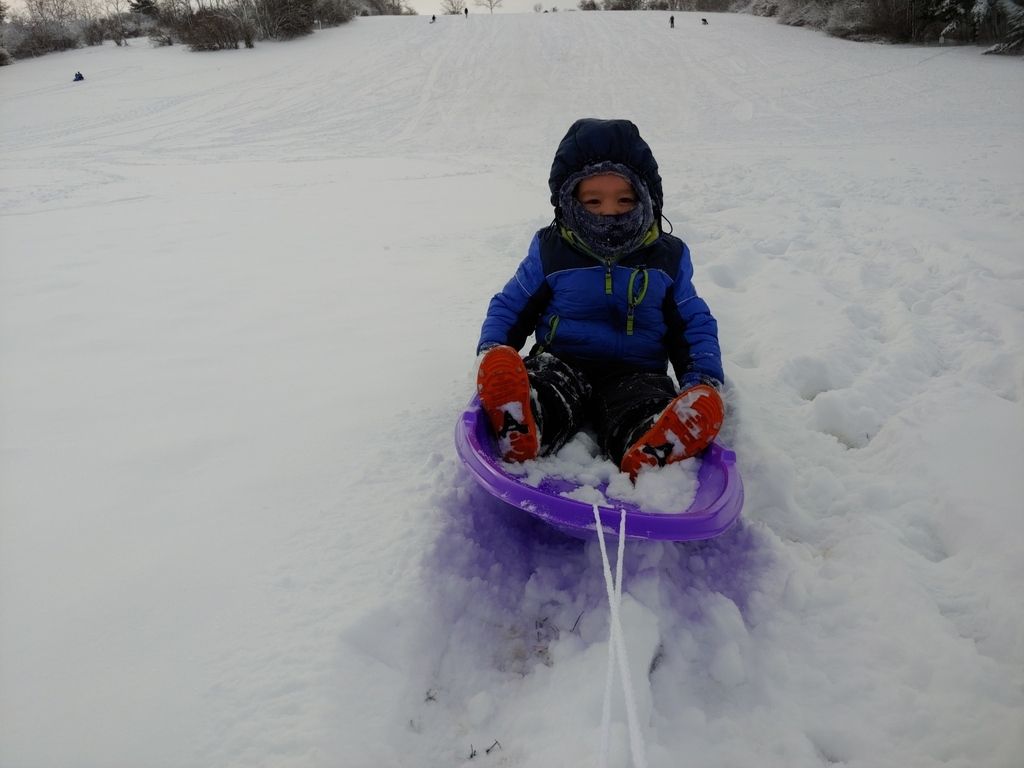 Our first run down the hill was a pretty spectacular wipe-out. Don't worry though, he was fine. After I got all the snow off of him he asked to do it again.