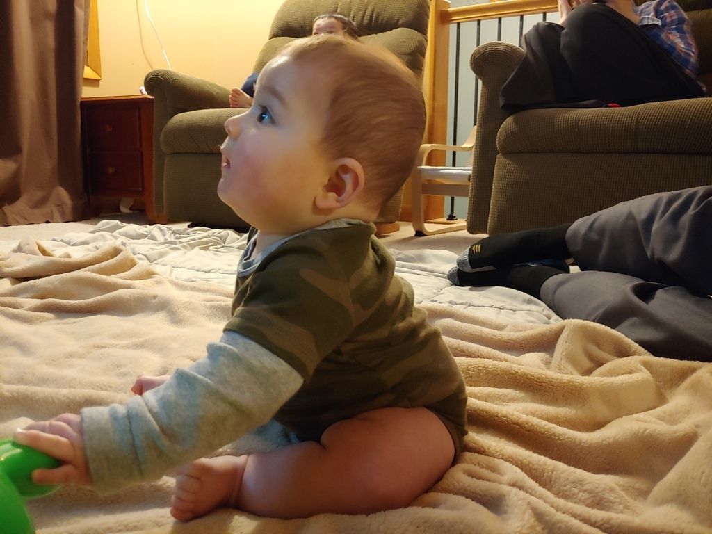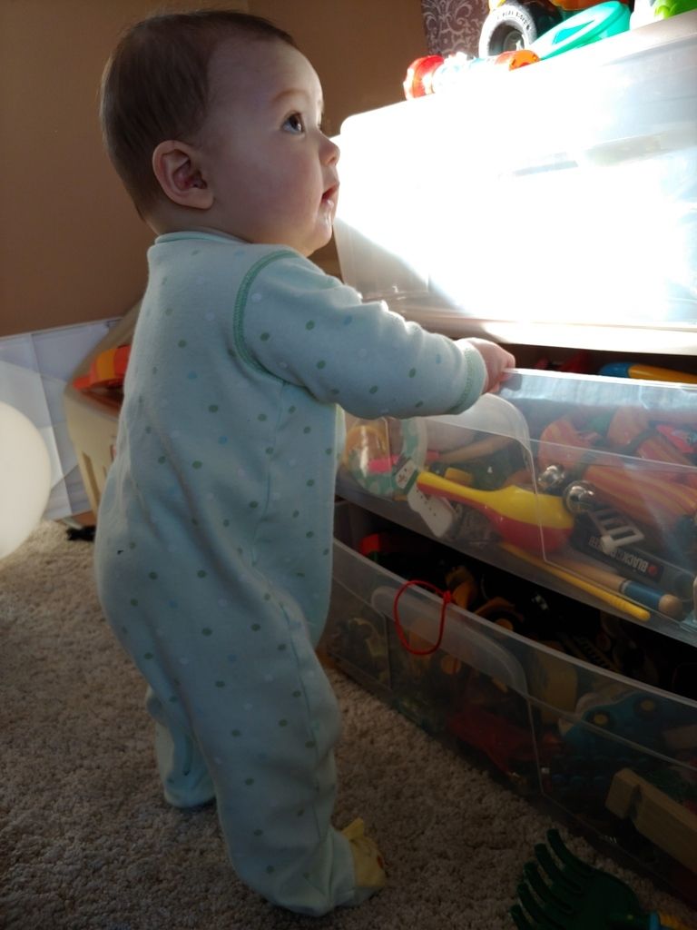 He's also pulling himself up on stuff more. We need to watch him like a hawk to catch him when he inevitably falls.