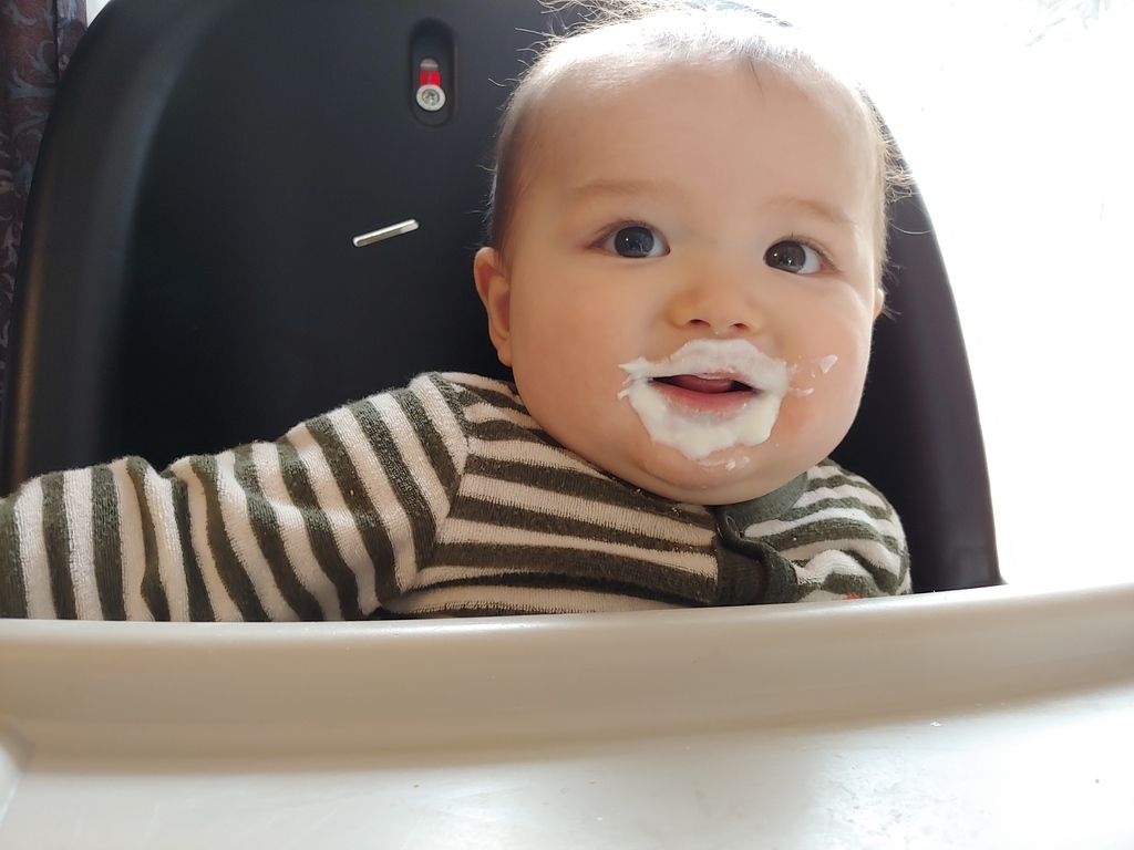 Kenny hasn't cared much for any of the baby foods we've tried, but liked this whole milk yogurt.