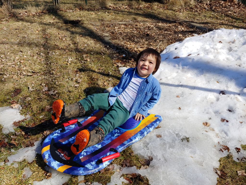 Helping me shovel.