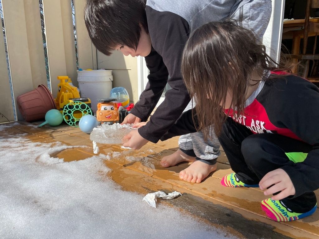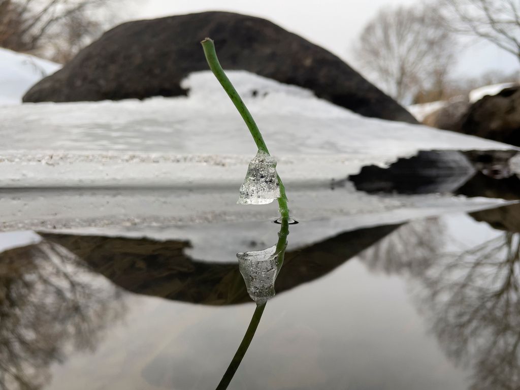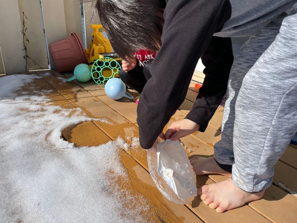 We put a big water balloon outside as an experiment and thought it must have popped after the last few big snowfalls. It turns out it was squished flat. Super weird.