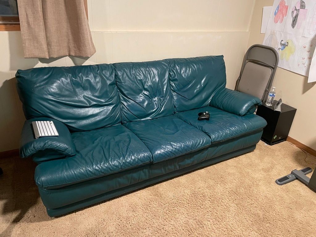 Goodwill had a leather sofa for $7.99 and the kids had jumped on our old basement sofa to death, so we snagged it.