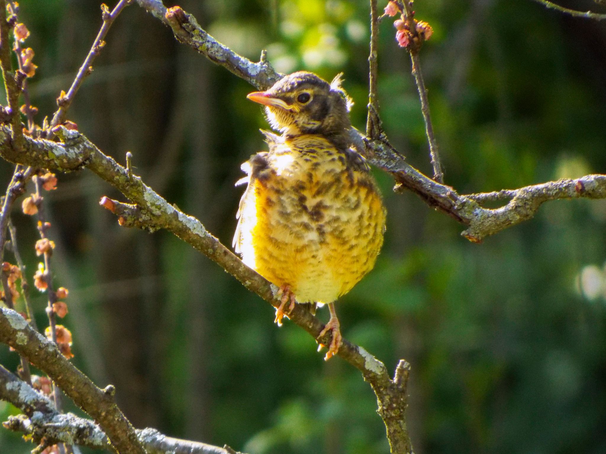 The last two birds left the nest yesterday evening. I spotted one of them still being dutifully guarded by its mother at breakfast.